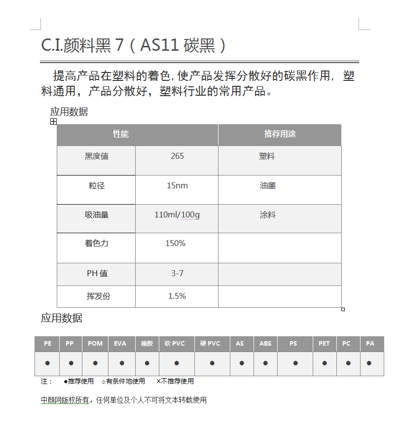 AROSPERSE 11 (欧励隆AS11碳黑) RCF类型 着色力116% 粒径19nm