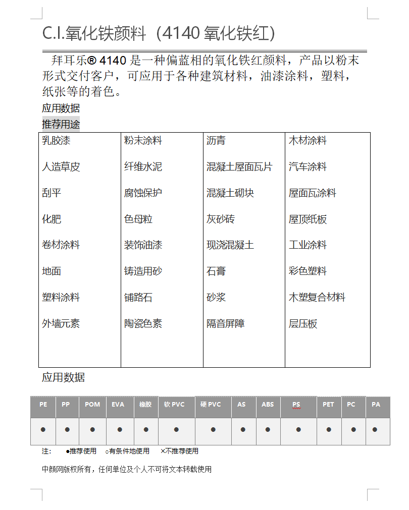 Bayferrox Red 4140氧化铁红 (朗盛4140氧化铁红) 拜耳乐4140