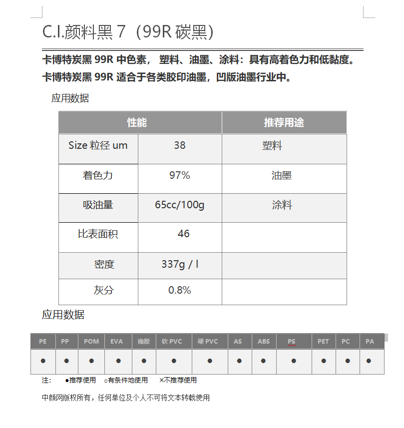 REGAL 99R碳黑 (卡博特99R碳黑) 美国产 油墨应用 蓝相