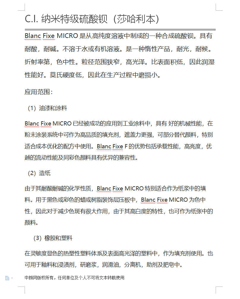 9113硫酸钡Bianc Fixe Micro (泛能拓)