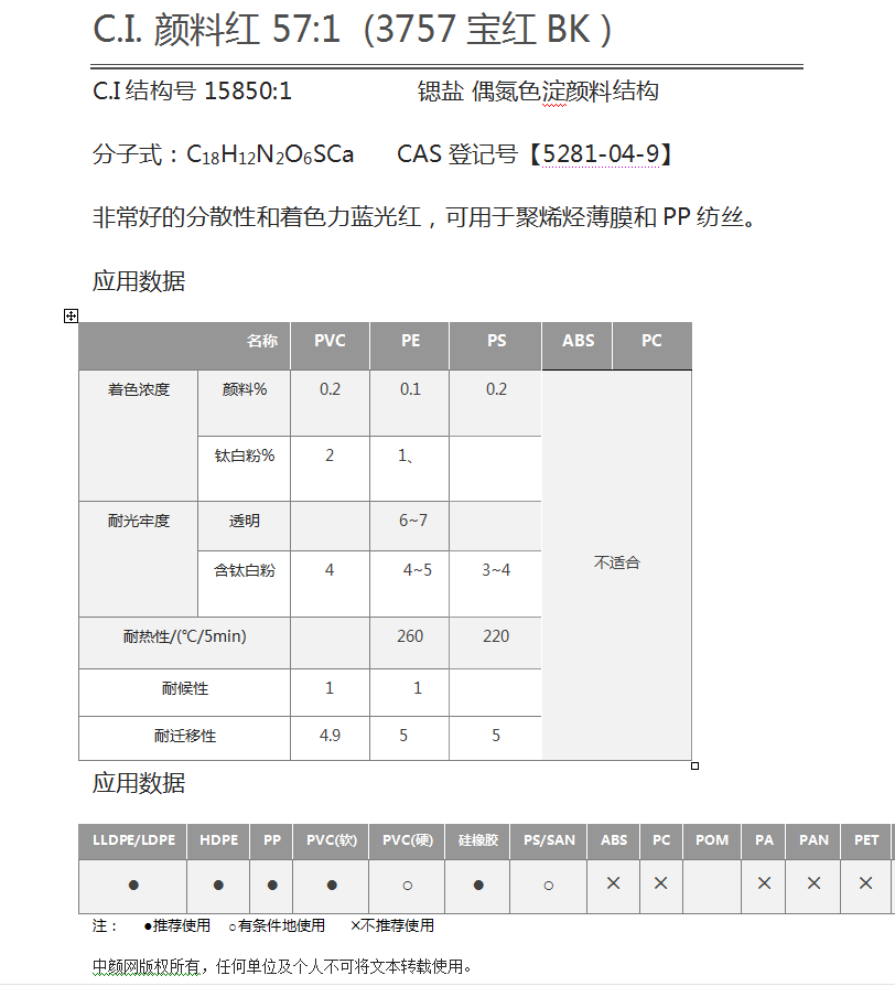 颜料宝红BK(国产57:1红)塑料 胶版应用