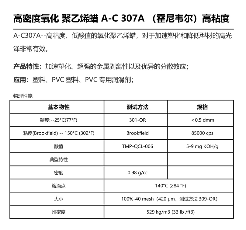 高密度氧化 聚乙烯蜡 A-C 307A( 霍尼韦尔307A蜡粉 )高粘度