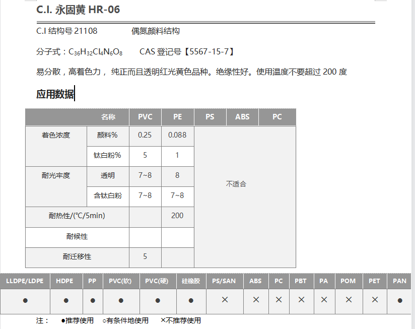 永固黄HR-06(国产83黄)塑料、涂料应用