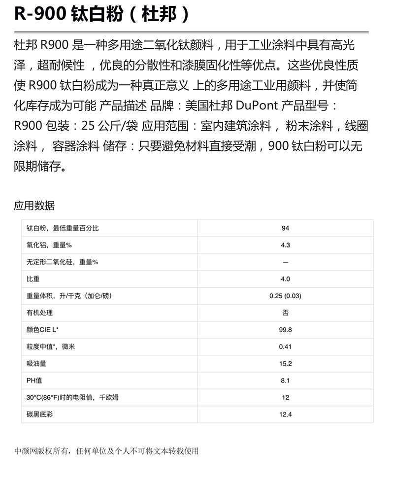 • 品名:R-900钛白粉