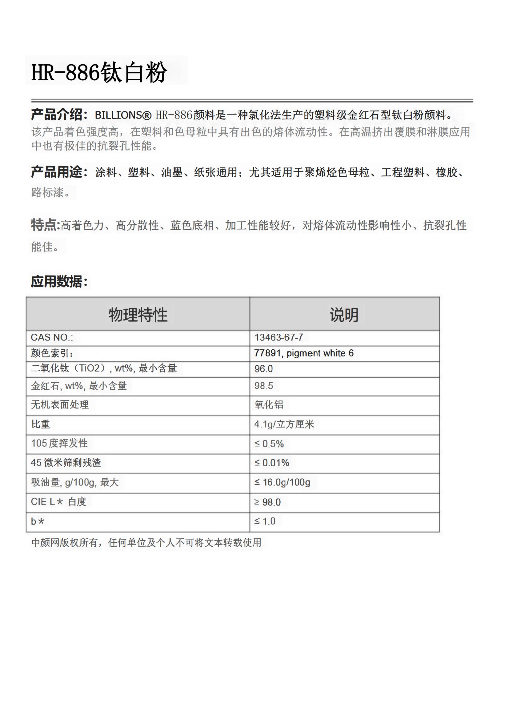 • 品名:HR-886钛白粉