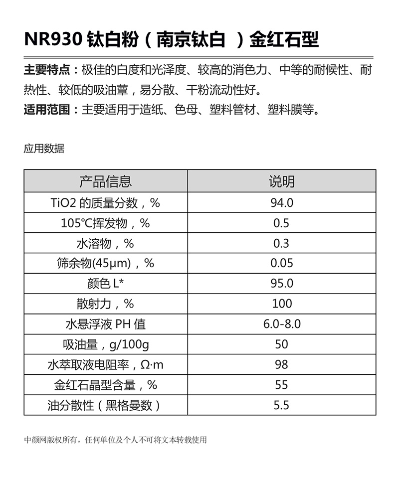 • 品名:NR930钛白粉