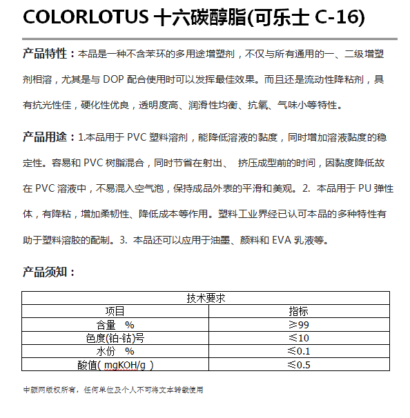 COLORLOTUS 十六碳醇脂(可乐士C-16)