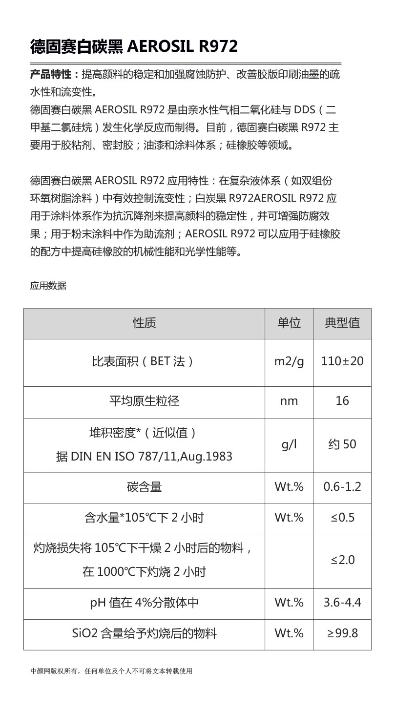 AEROSIL R972白碳黑(德固赛R972白炭黑)