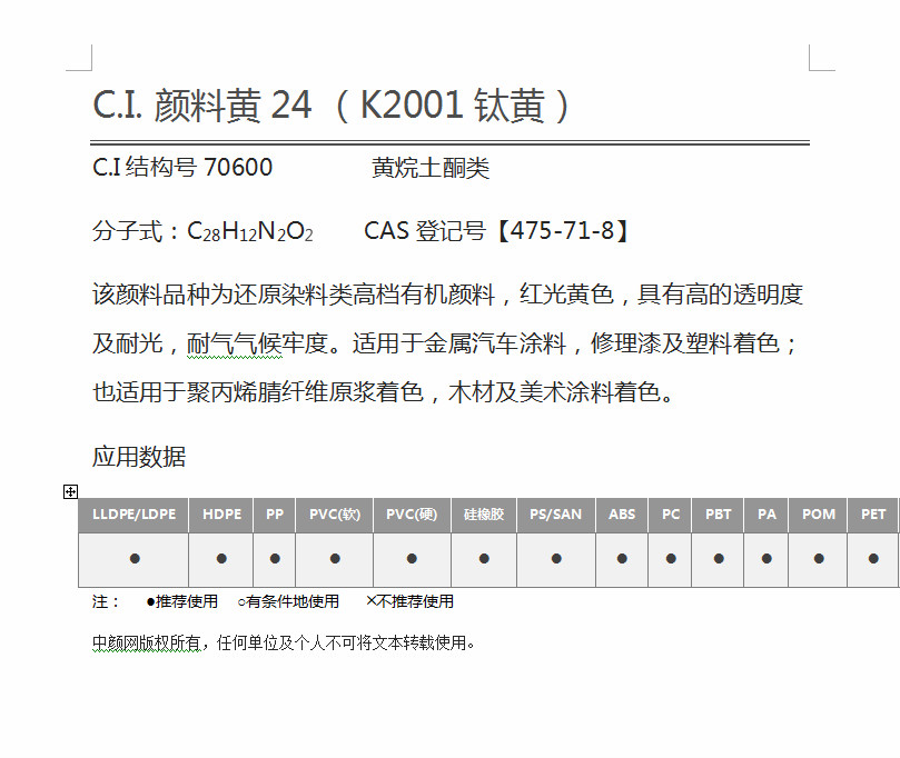 Sicotan Yellow K2001钛黄(巴斯夫24钛黄)尼龙水煮