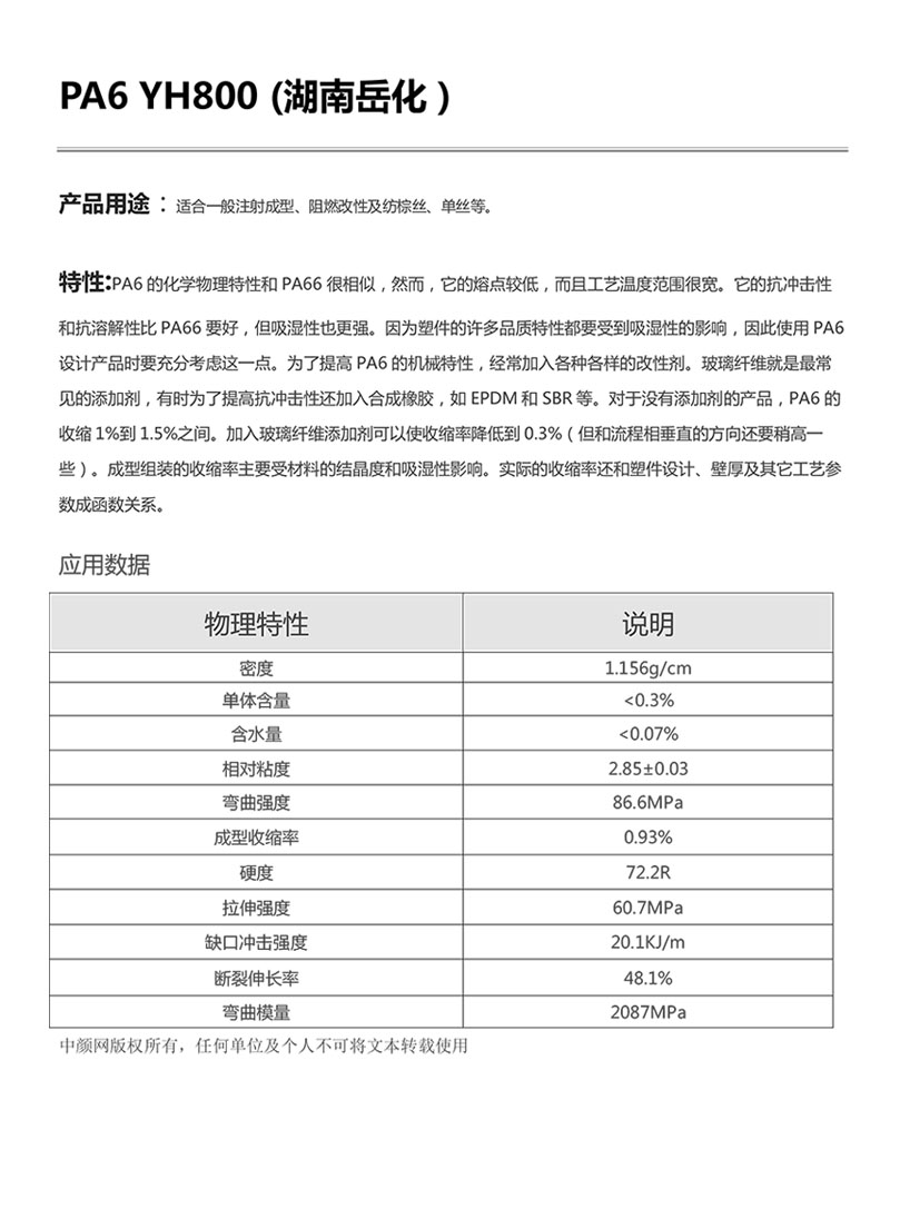 PA6 YH800 (湖南岳化YH800) 中石化巴陵YH-800