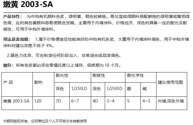 嫩黄2003-SA中档水性有机色浆 (英德科迪2003嫩黄) 水性漆 涂料 油墨着色