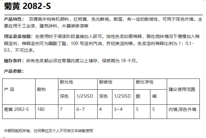 菊黄2082-S中档水性有机色浆 (英德科迪2082菊黄) 水性漆 涂料 油墨着色