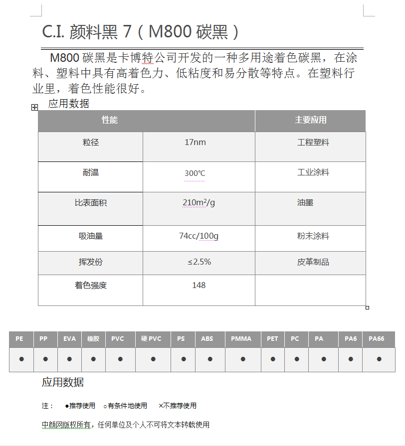 MONARCH 800碳黑 (卡博特M800碳黑) 徐州产 中色素碳黑 高档工业涂料 塑料着色