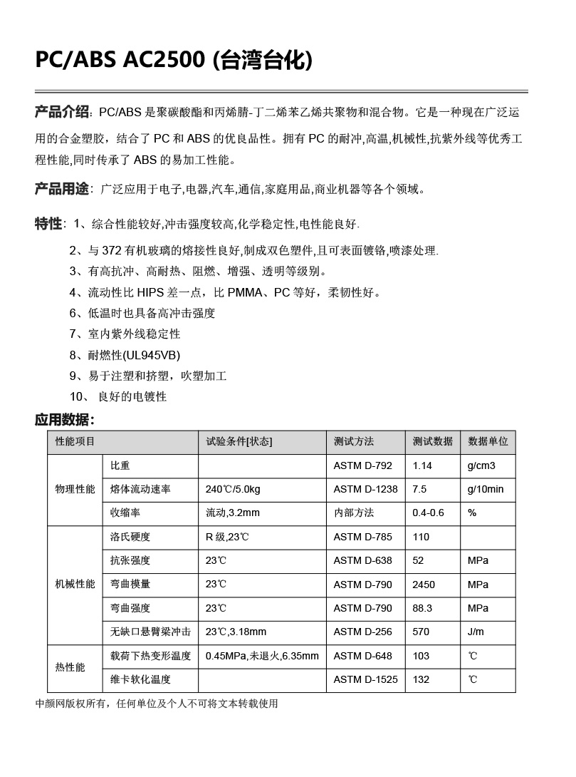 PC/ABS AC2500 020A(台湾台化AC2500 020A)