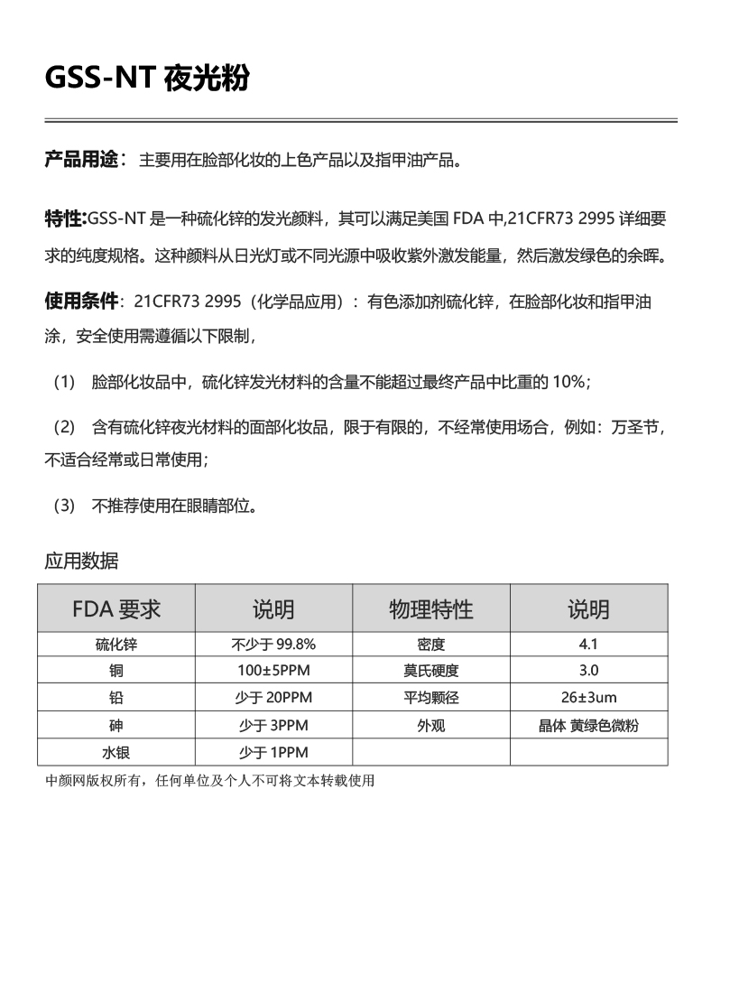 13710 夜光粉GSS-NT (化妆品应用夜光粉 )FDA标准 发绿光