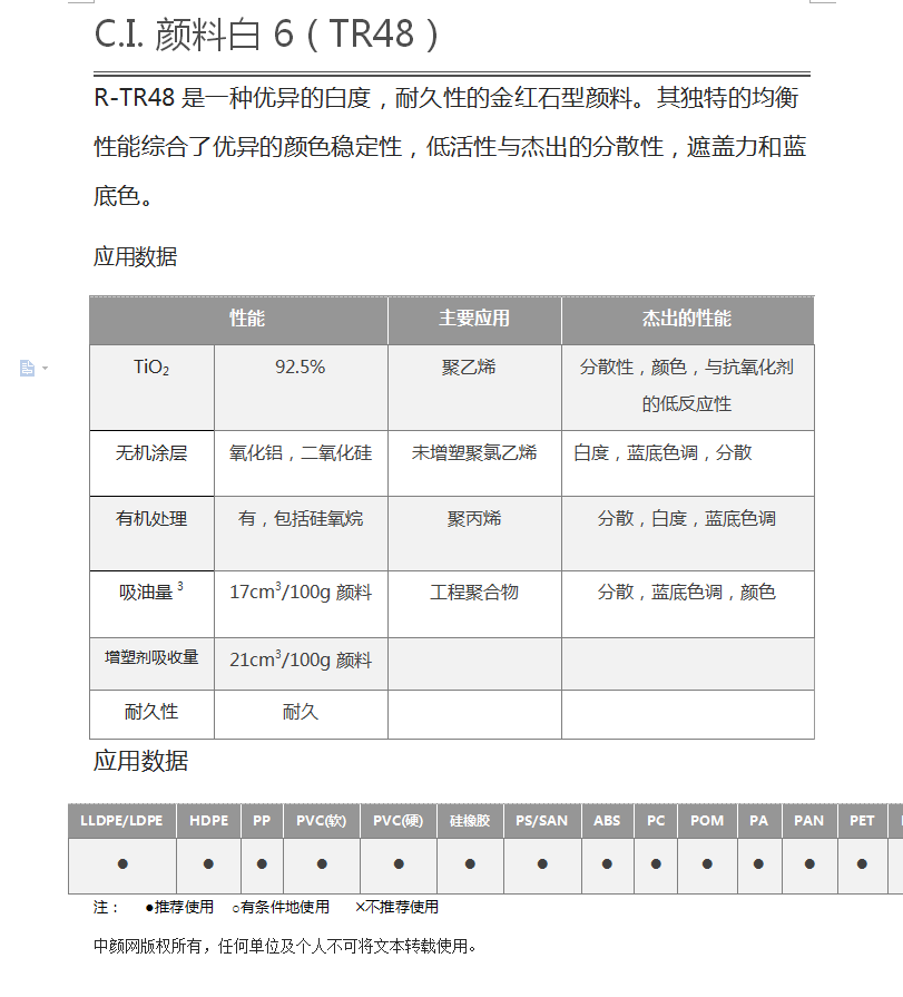 TR48钛白粉(泛能拓)塑料最常用钛白粉