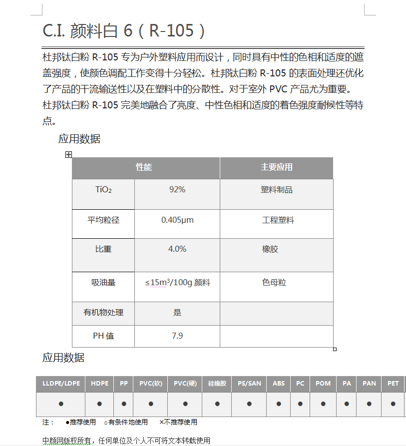 R-105钛白粉(科慕钛白粉) 杜邦