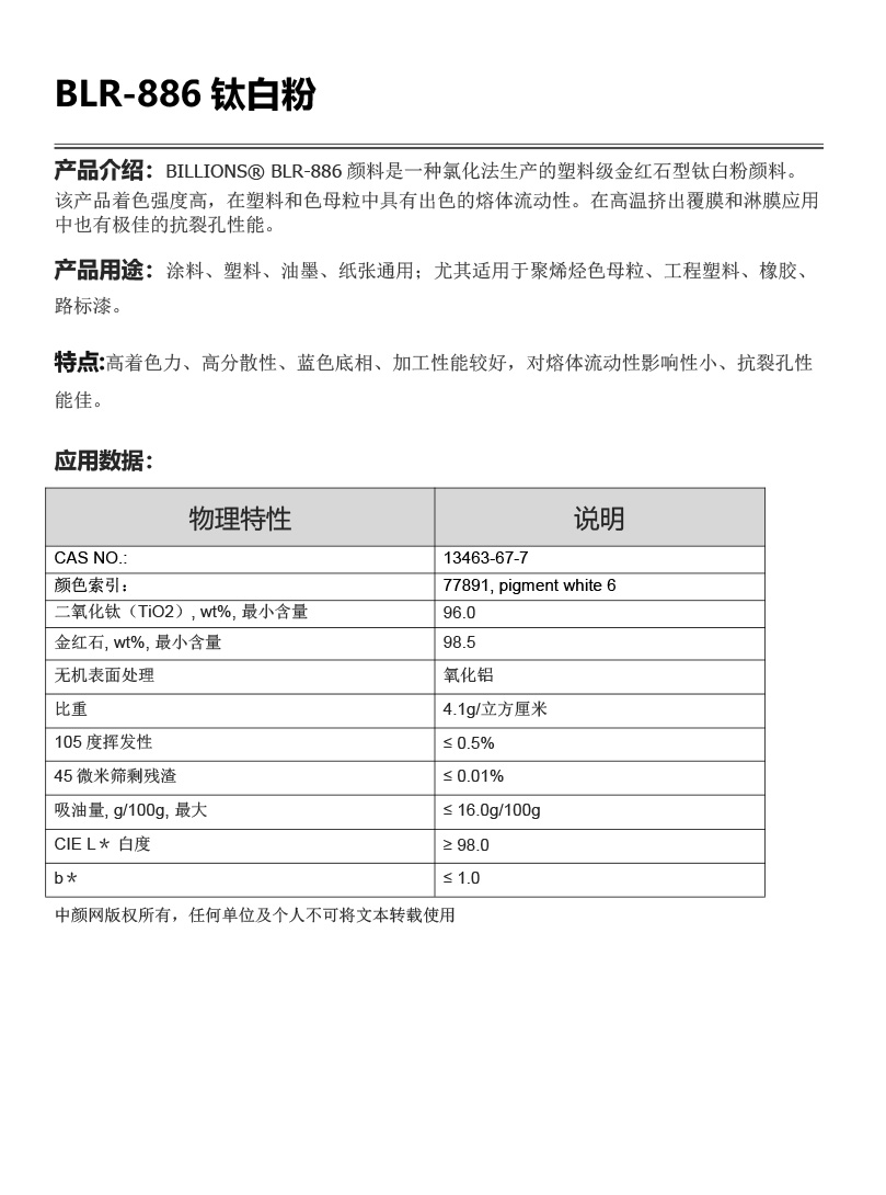 BLR-886钛白粉(龙蟒云南产)塑料产