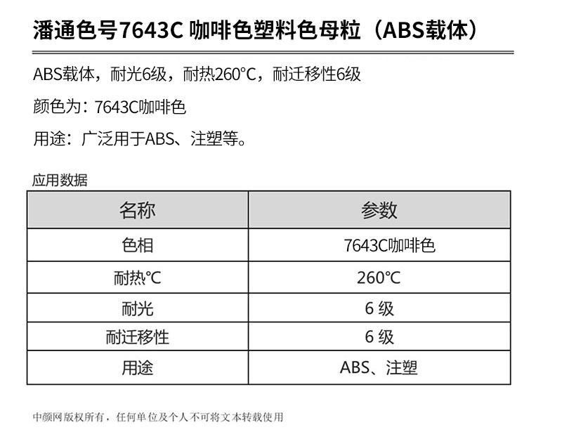 潘通色号7643C 咖啡色塑料色母粒(ABS载体)