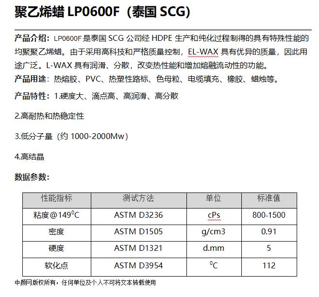 SCG LP0600F聚乙烯蜡 PE蜡 片状 (泰国0600F蜡) SCG品牌