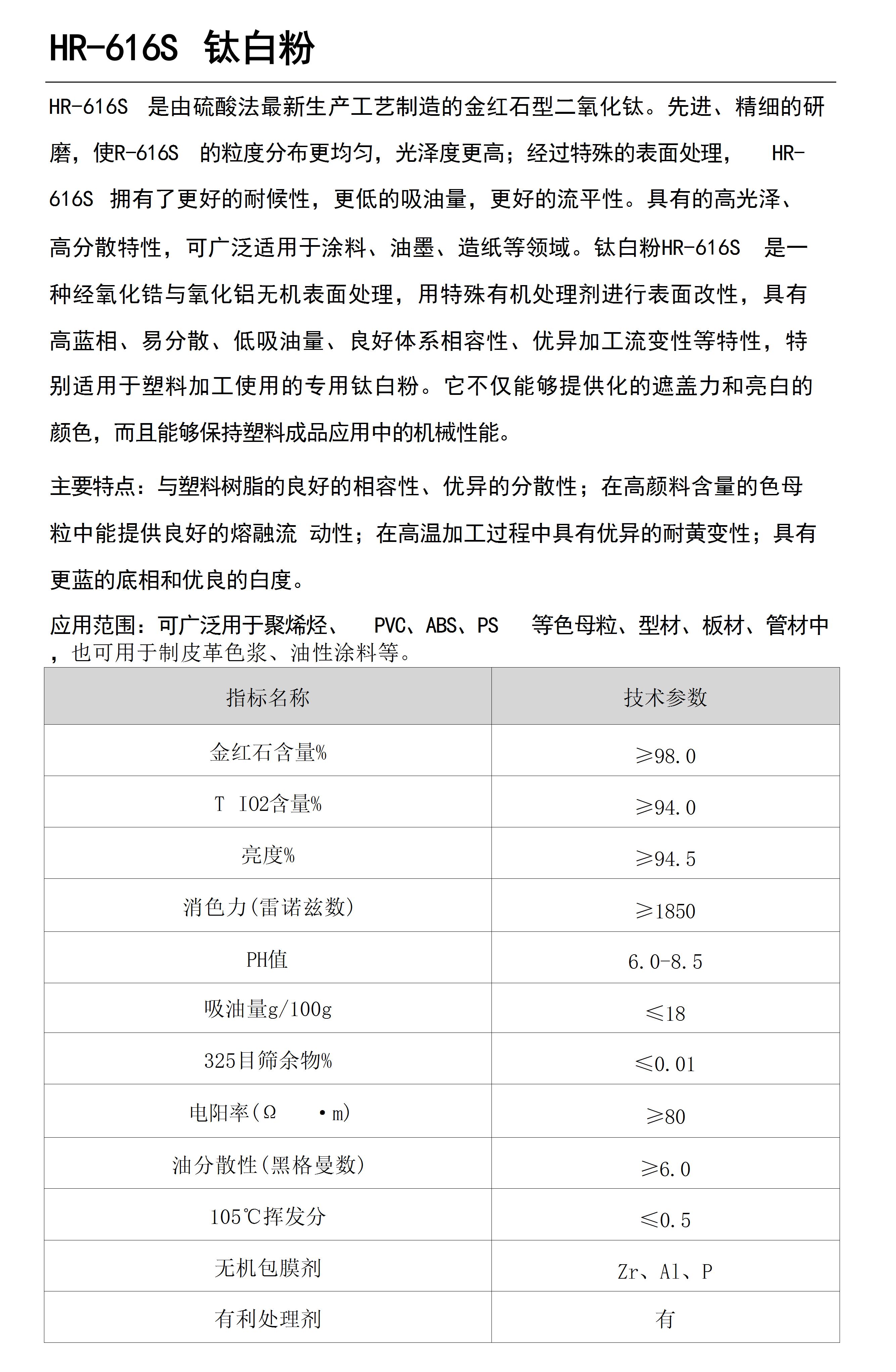 HR-616S钛白粉(CABA品牌)红金红石型 塑料应用