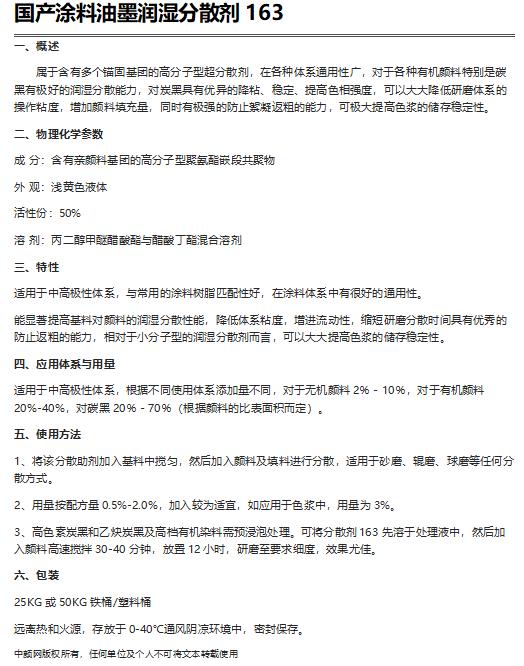国产涂料油墨润湿分散剂163(代替BYK163分散剂)