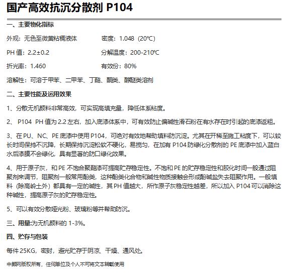 国产高效抗沉分散剂P104 (代替BYK-P104分散剂)