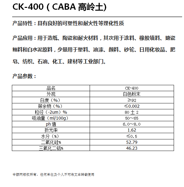 CK-400超细煅烧高岭土(CK400高岭土)