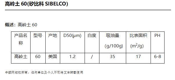 矽比科SIBELCO高岭土60(矽比科高岭土60)