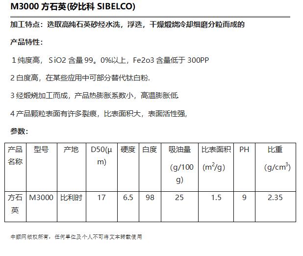 矽比科SIBELCO方石英M3000(矽比科方石英粉M3000)