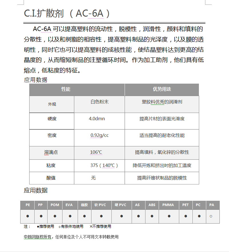 聚乙烯蜡6A扩散剂(国产6A蜡)较高结晶度
