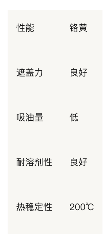 以下为铬黄的各项性能指数