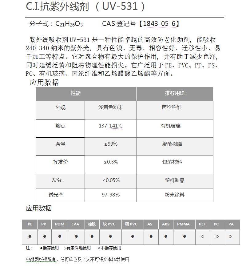UV531抗紫外线剂(CABA品牌)精品级UV剂