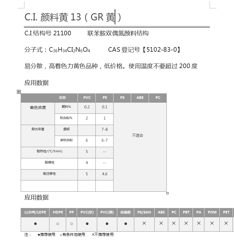 Graphtol GR黄(科莱恩13黄) 塑料应用
